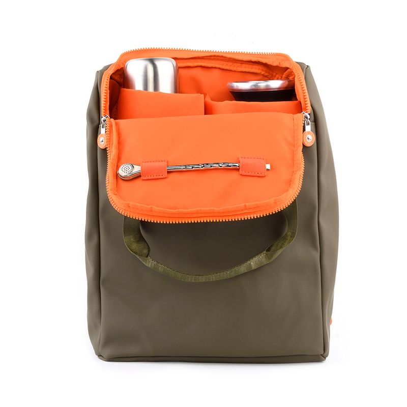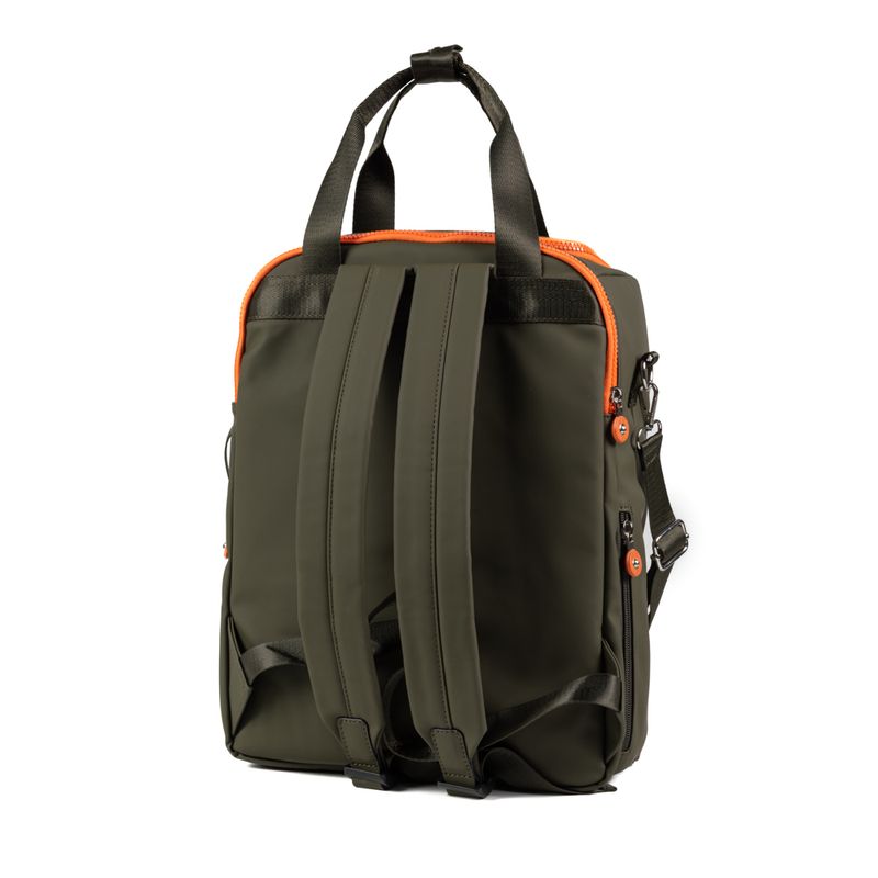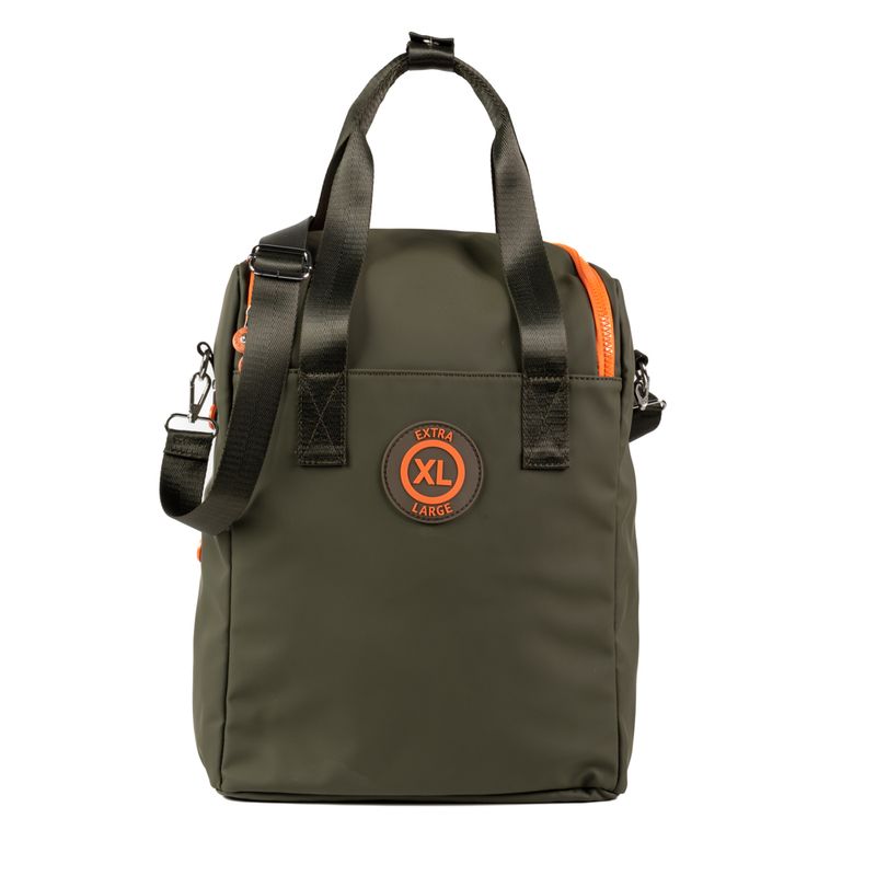 Material: 100% Poliéster. Medidas: Largo 28 cm Alto 39 cm Prof 12 cm. Acceso: Cierre doble. Color: Verde. Bolsillos internos: 1 c/ cierre, 2 abiertos. Bolsillos externos: 2 c/ cierre. Correa: Regulable y asas fijas. Herrajes: Plateado. Compatimientos: Notebook / Matero. Interior: En tela de algodón y Poliéster. Detalle: Diseño reforzado y flexible de gran capacidad, logotipo de la marca en el frente. Codigo: XV4SYI12C0607
