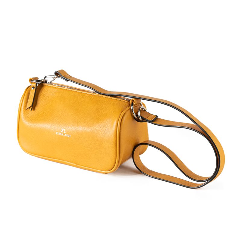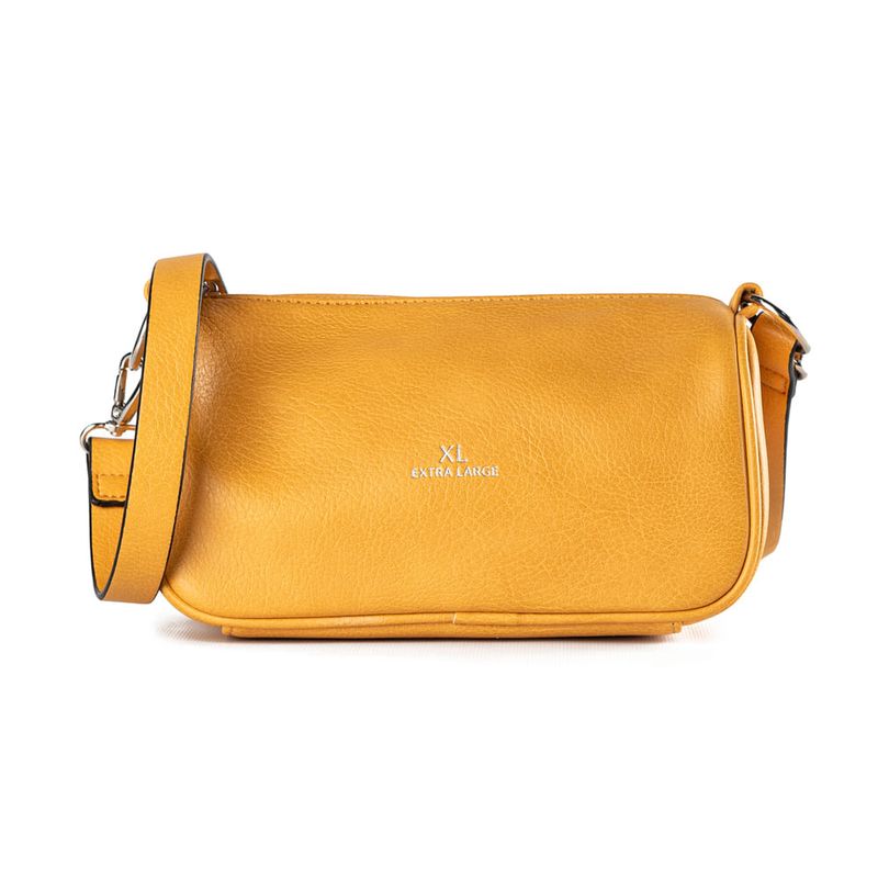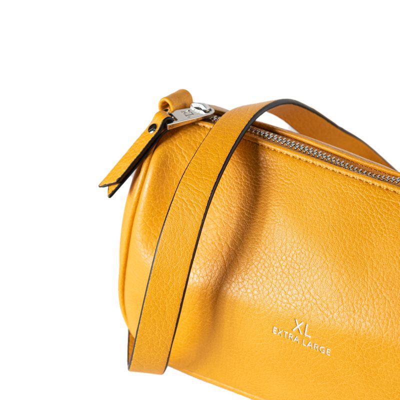 Material: 100% PU. Medidas: Largo 22 cm. Alto 11 cm. Prof. 10 cm. Acceso: Con cierre. Color: Amarillo. Bolsillos internos: 1 c/ cierre. Bolsillos externos: 1 c/ cierre. Correa: Regulable. Herrajes: Plateado. Compartimientos: 1. Detalle: Símil cuero graneado, con gran capacidad para llevar pequeños objetos. Código: XV3SKR10C0126.