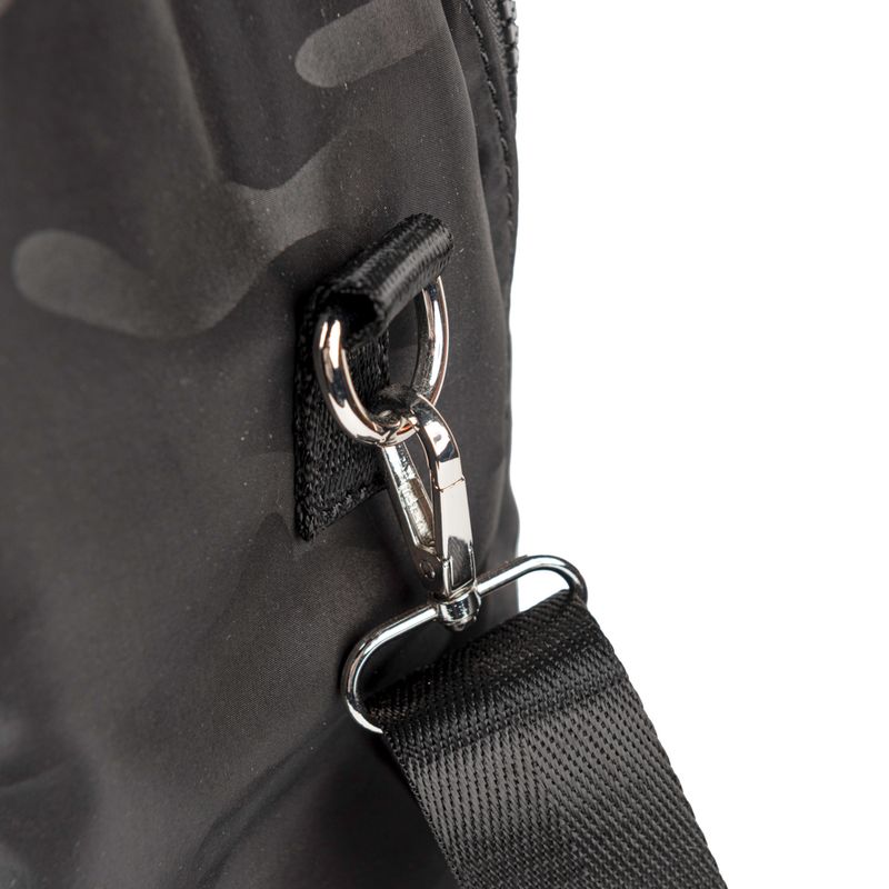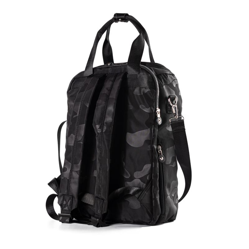 Material: 100% Poliéster. Medidas: Largo 28 cm Alto 39 cm Prof 12 cm. Acceso: Cierre doble. Color: Negro. Bolsillos internos: 1 c/ cierre, 2 abiertos. Bolsillos externos: 2 c/ cierre. Correa: Regulable y asas fijas. Herrajes: Plateado. Compatimientos: Notebook / Matero. Interior: En tela de algodón y Poliéster. Detalle: Diseño reforzado y flexible de gran capacidad, logotipo de la marca en el frente. Codigo: XT4SYI11C0601