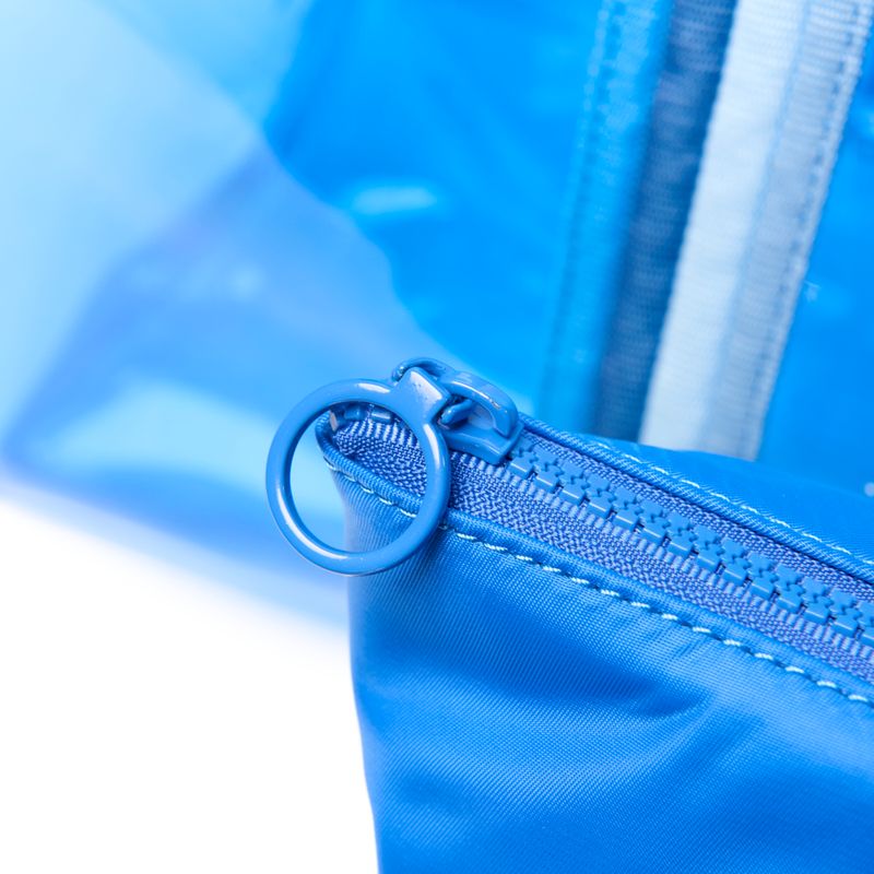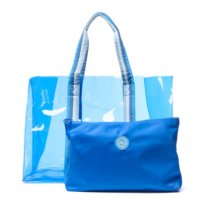 Doble asa de cinta rayada bicolor para hombro o mano.