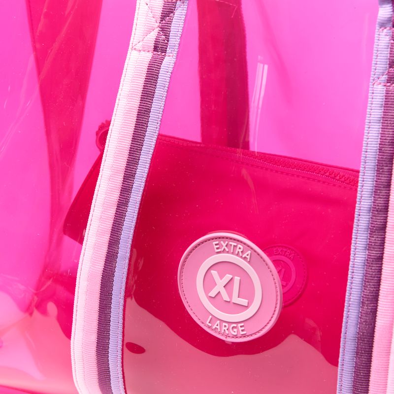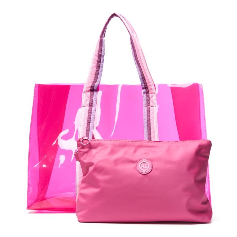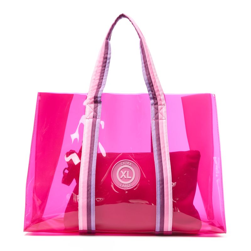 Doble asa de cinta rayada bicolor para hombro o mano.