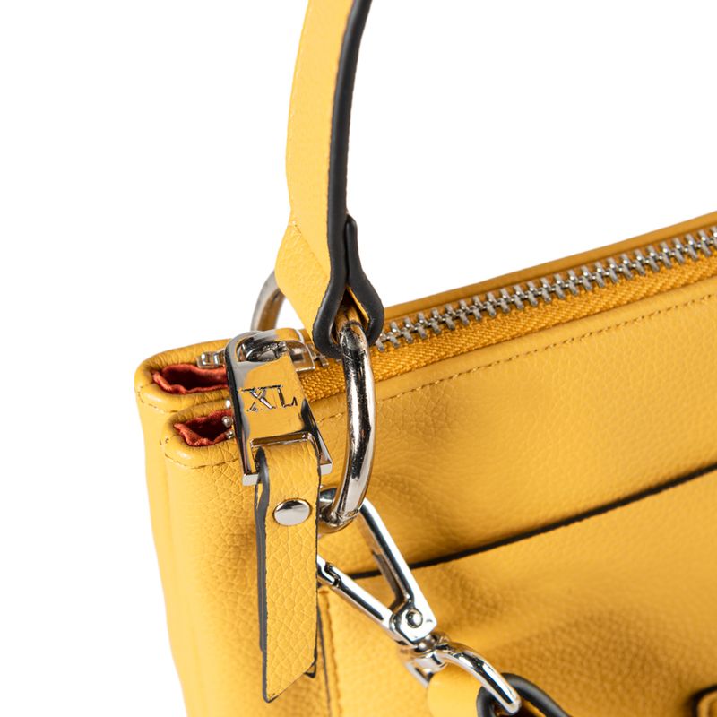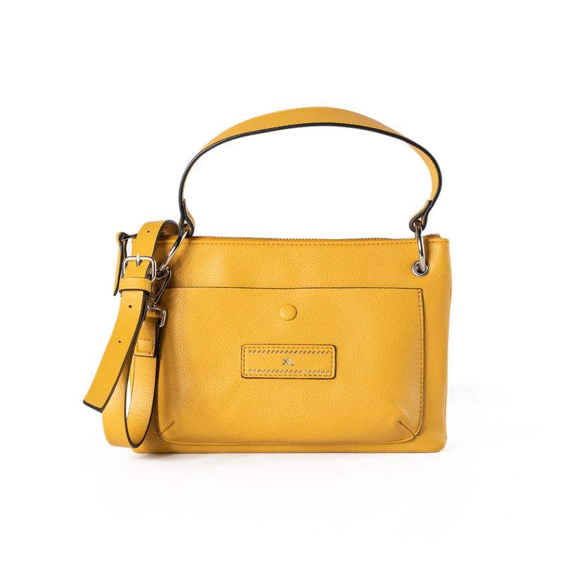 Material: 100% PU. Medidas: Largo 24,5 cm. Alto 17 cm. Prof. 6 cm. Acceso: Con cierre. Color: Mostaza. Bolsillos internos: 1 c/ cierre. Bolsillos externos: 1 c/ botón. Correa: Regulable y asas fijas. Herrajes: Plateado. Compartimientos: 1. Detalle: Símil cuero graneado, se puede llevar como bandolera o en la mano. Código: XV3SKR06C0726.